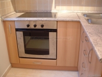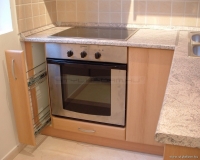 Konyhabútor bükk színű vákuumfóliás frontfelülettel, és kihúzható italtartó ráccsal